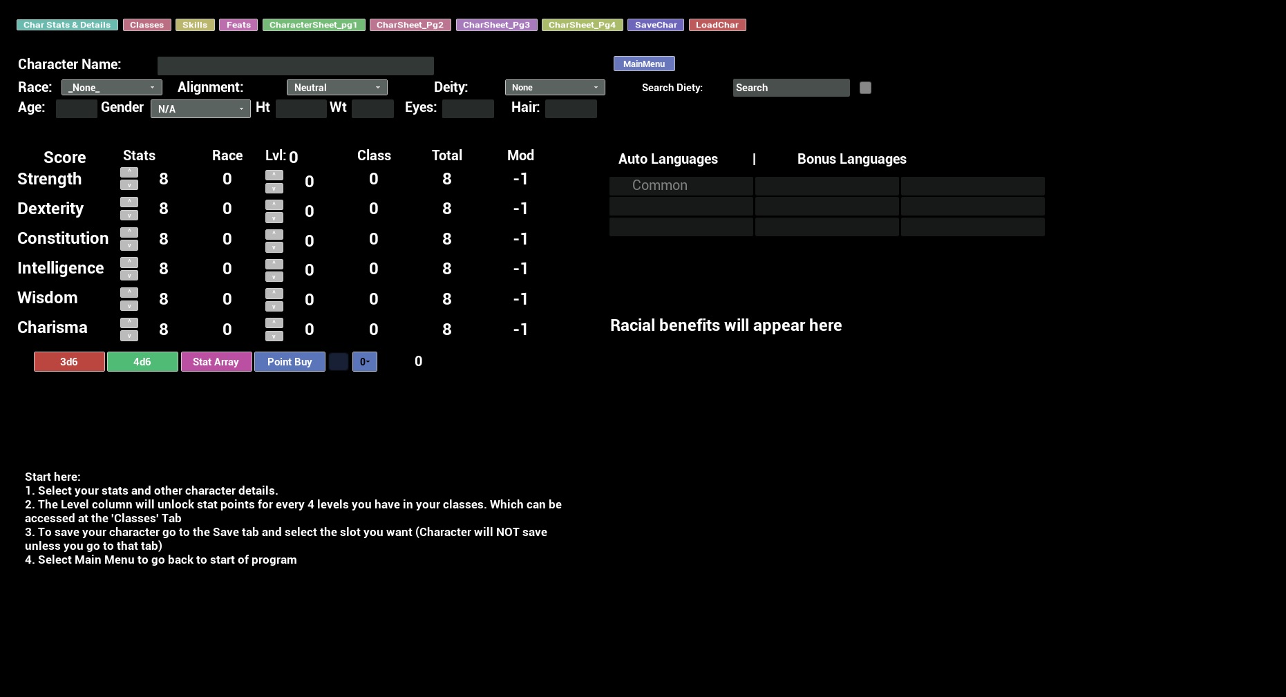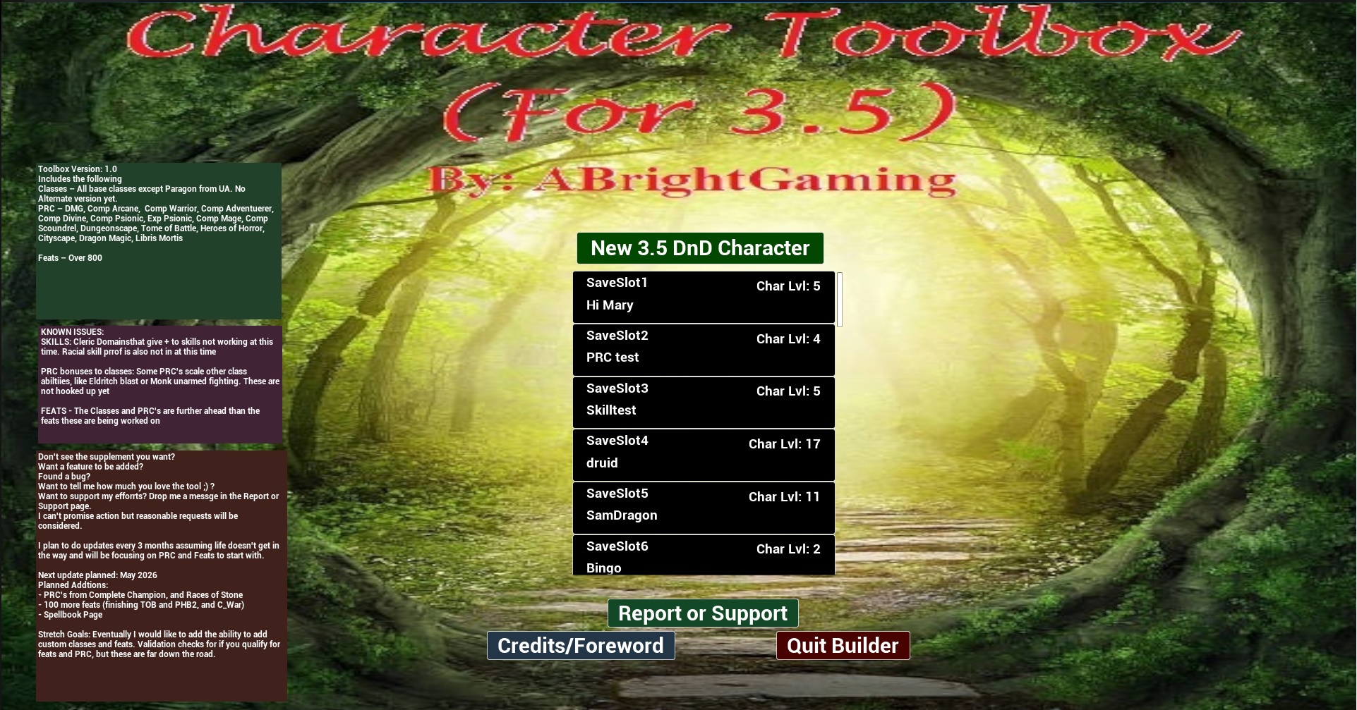 Welcome to the 3.5 DnD Toolbox Character Builder.