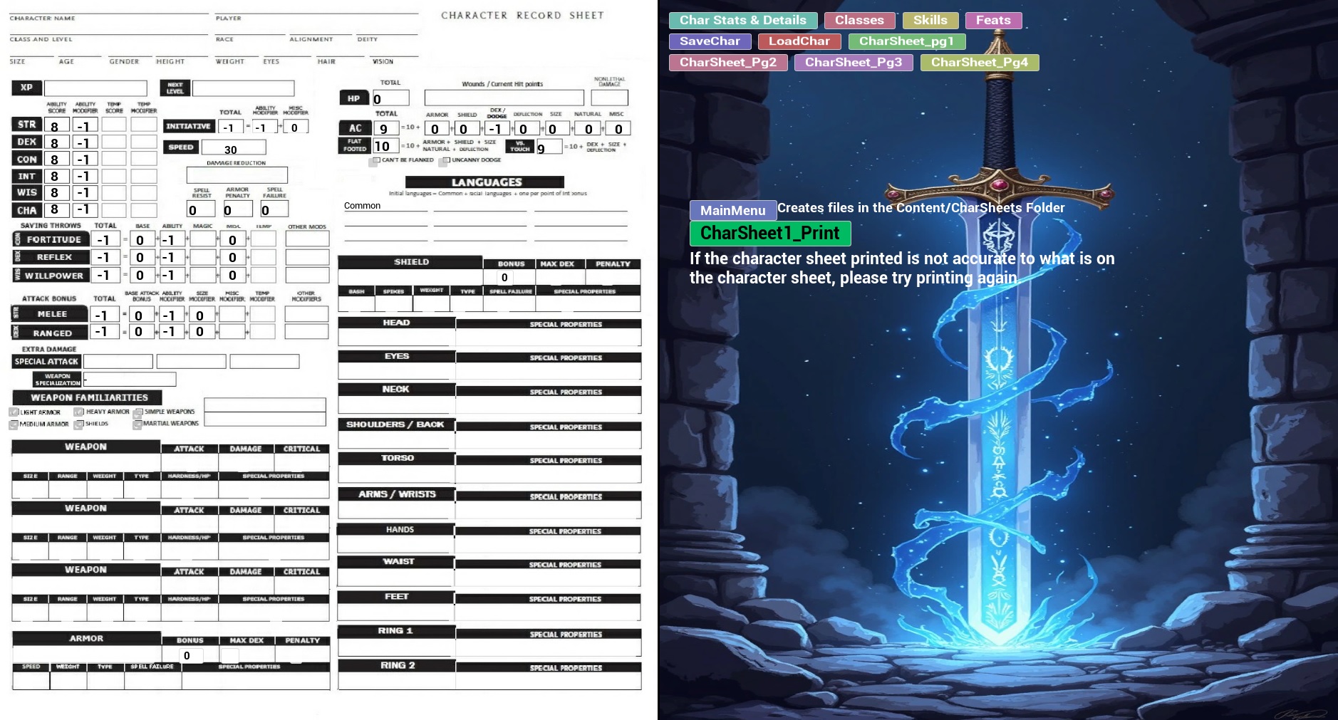 For those who like and play DnD 3.5 this character builder is one of the most complete character builders you will find. Over 90% of the base classes, 200+ of the prestige classes, over 800 feats all with more on the way. This builder will let you create your dream characters up to level 20, handle most of the math and modifiers, even includes description for the class and feats you select. then allow you to print out the sheets to a png file for easy printing or use on any device that will accept the format.